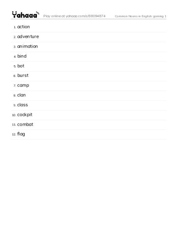 'Common Nouns in English: gaming 1' FREE Printable Worksheets