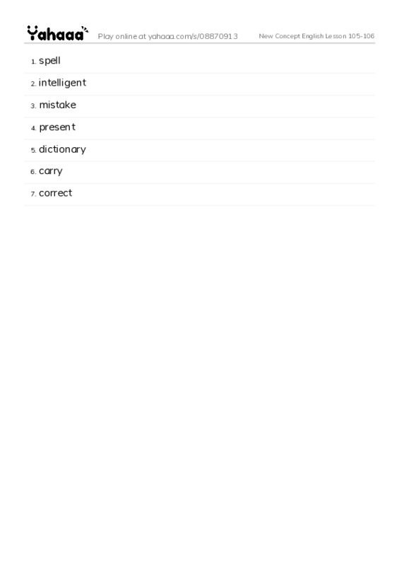spell, intelligent, mistake, present, dictionary, carry, correct