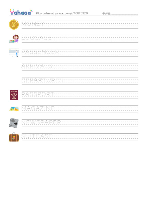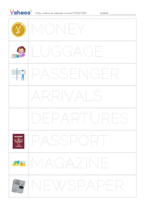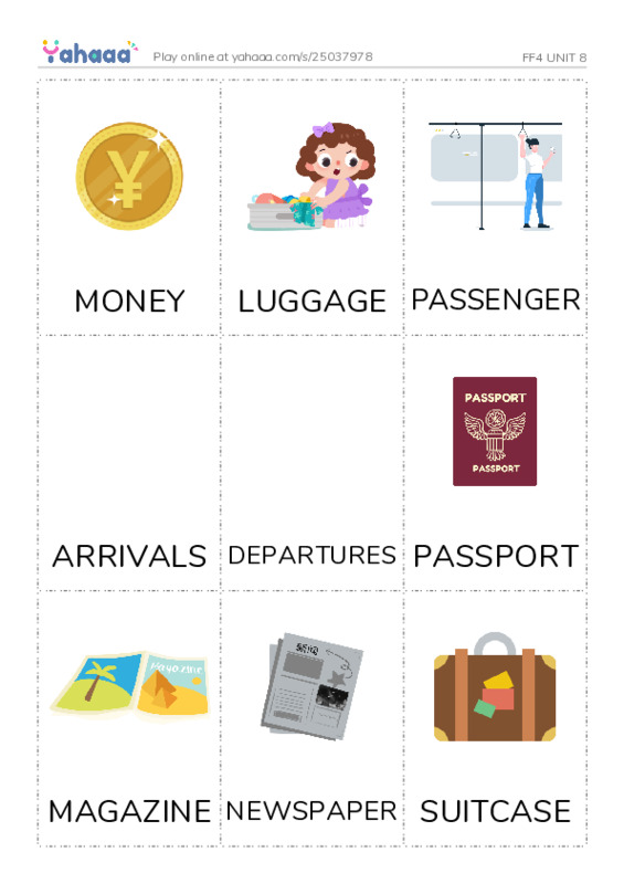 MONEY, LUGGAGE, PASSENGER, ARRIVALS, DEPARTURES, PASSPORT, MAGAZINE, NEWSPAPER, SUITCASE