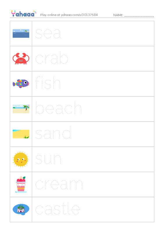 sea, crab, fish, beach, sand, sun, cream, castle, find, wait