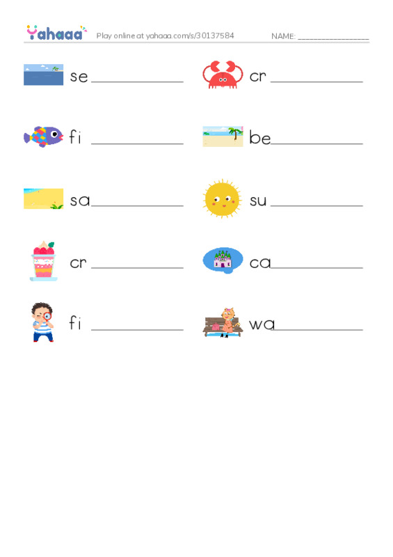 worksheet to fill in words gaps