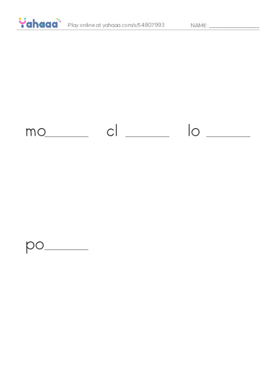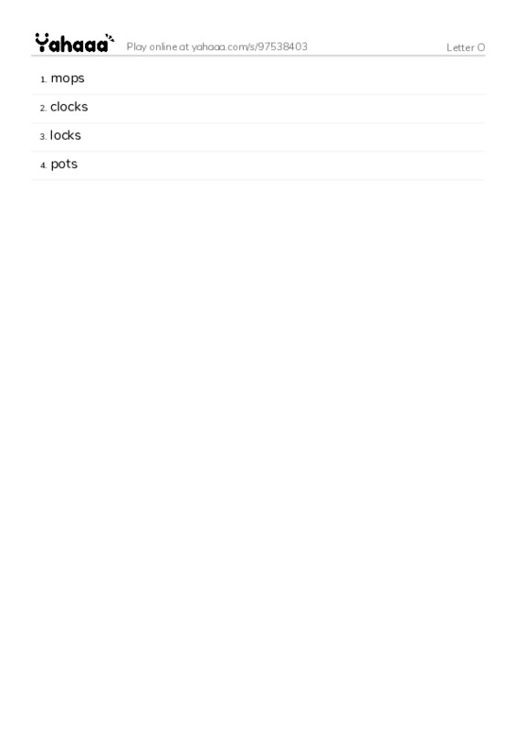 More Worksheets in Words to pronounce O
