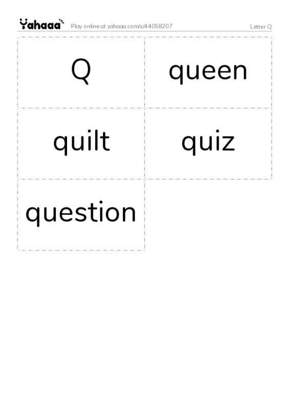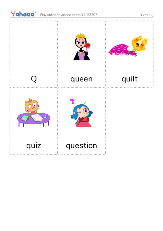 Q, queen, quilt, quiz, question