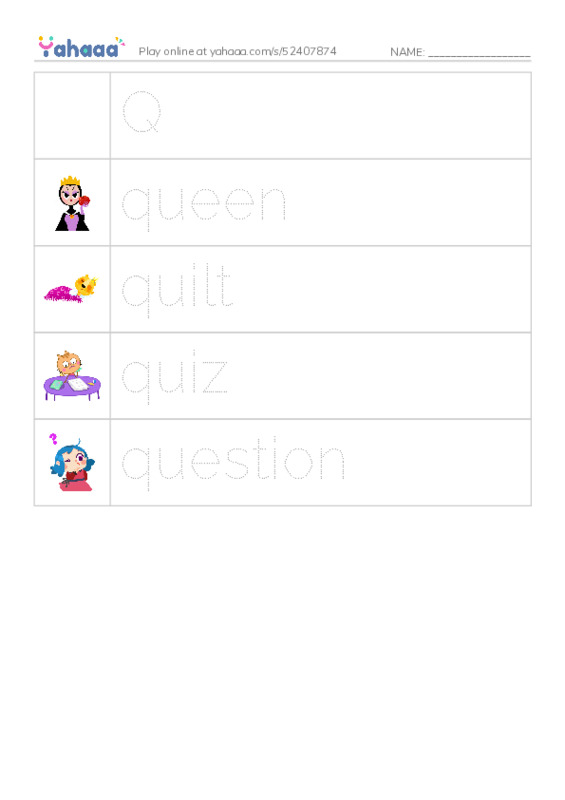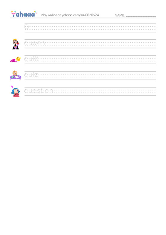 More Worksheets in Letter Q