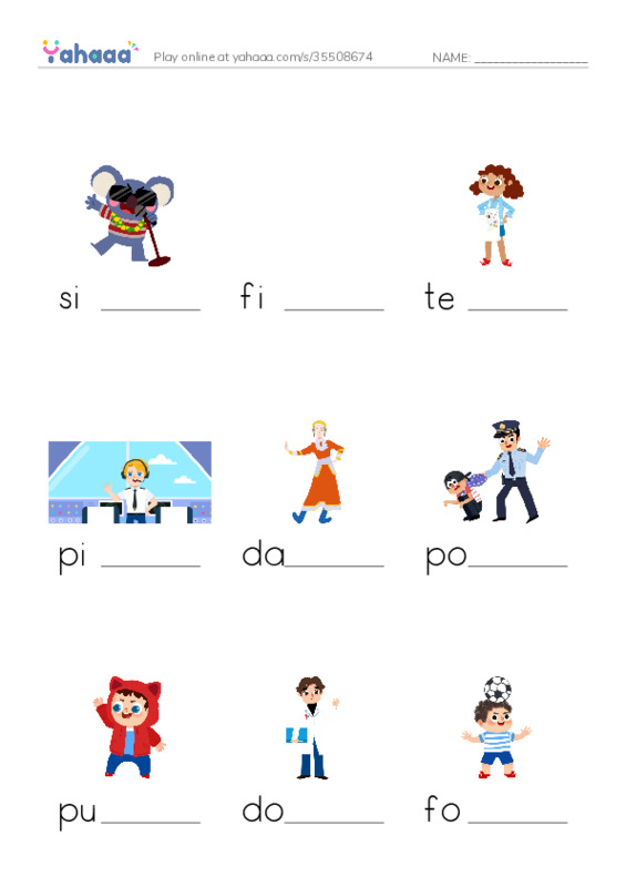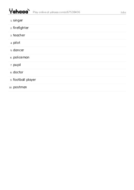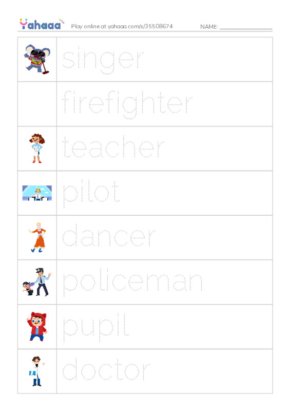 singer, firefighter, teacher, pilot, dancer, policeman, pupil, doctor, football player, postman