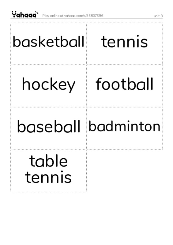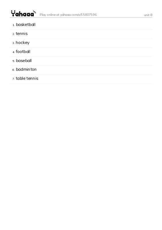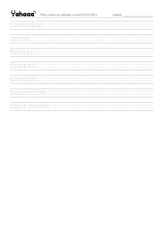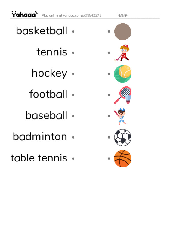 basketball, tennis, hockey, football, baseball, badminton, table tennis