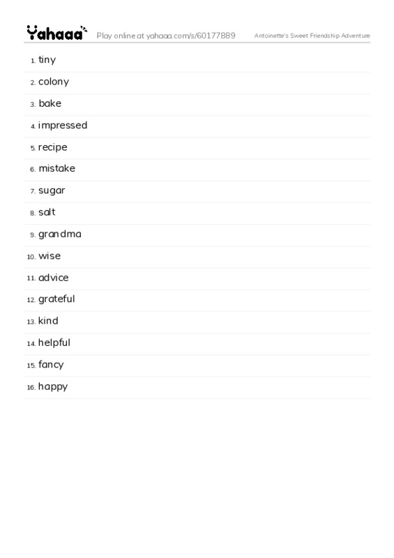 Antoinette's Sweet Friendship Adventure PDF two columns flashcards