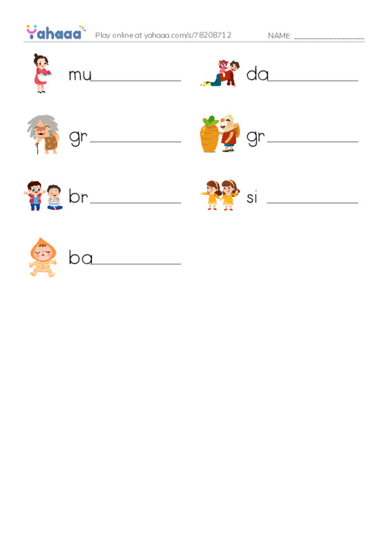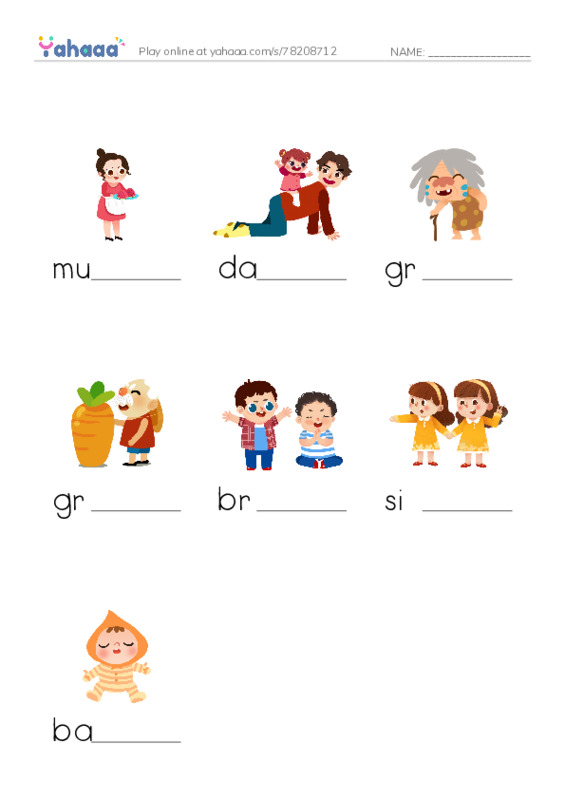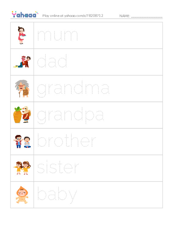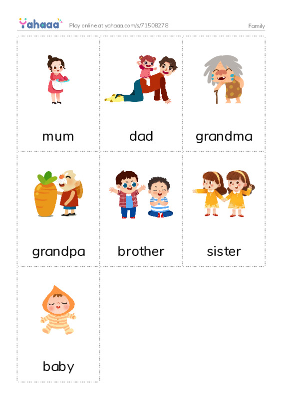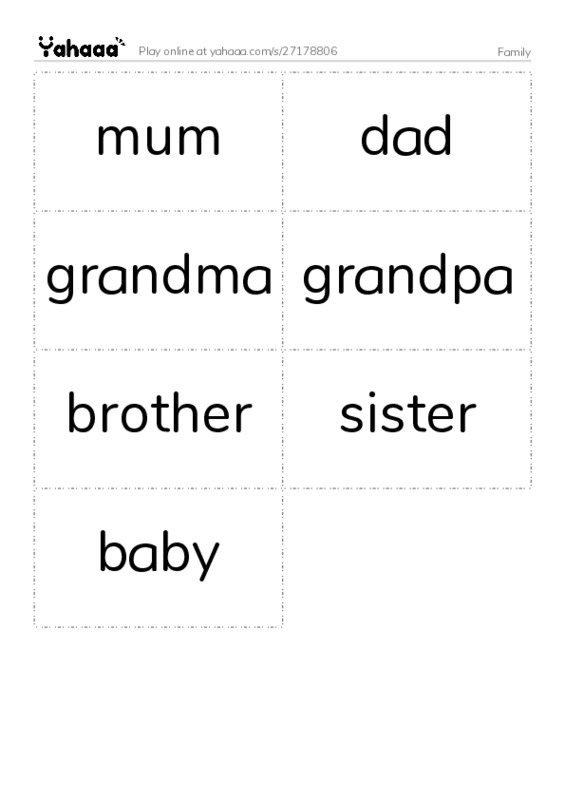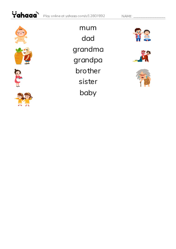 mum, dad, grandma, grandpa, brother, sister, baby