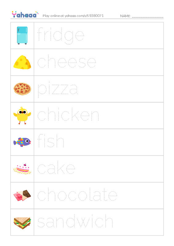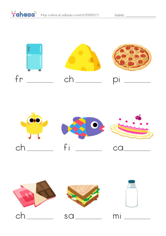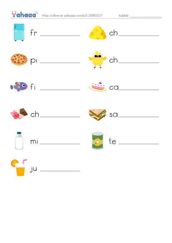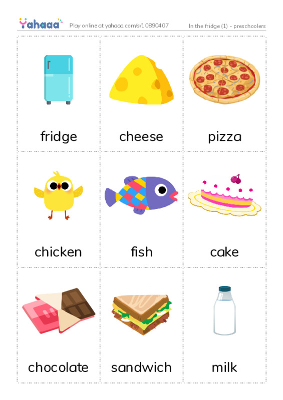 fridge, cheese, pizza, chicken, fish, cake, chocolate, sandwich, milk, tea, juice