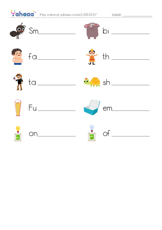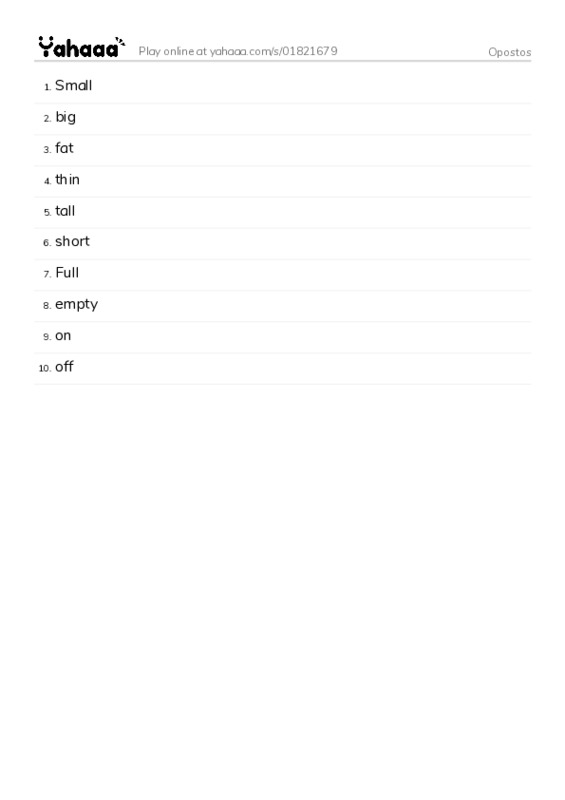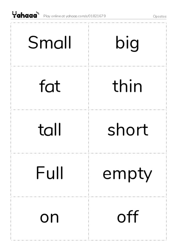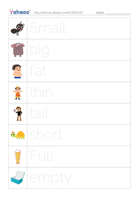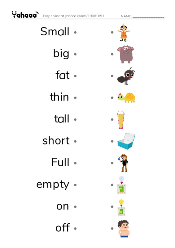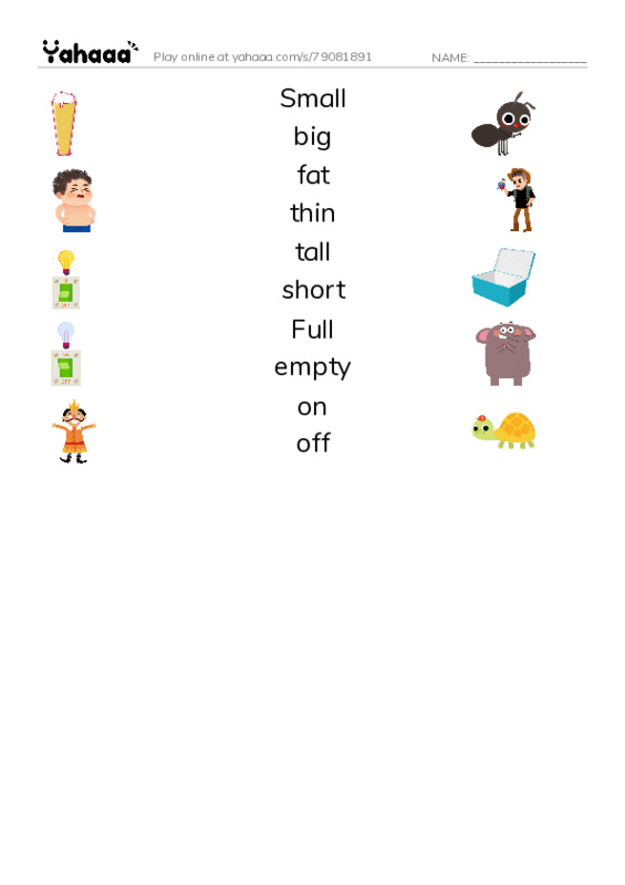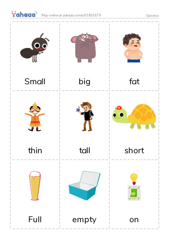 Small, big, fat, thin, tall, short, Full, empty, on, off