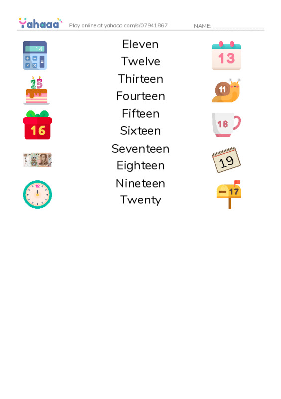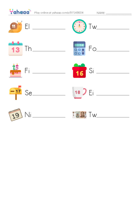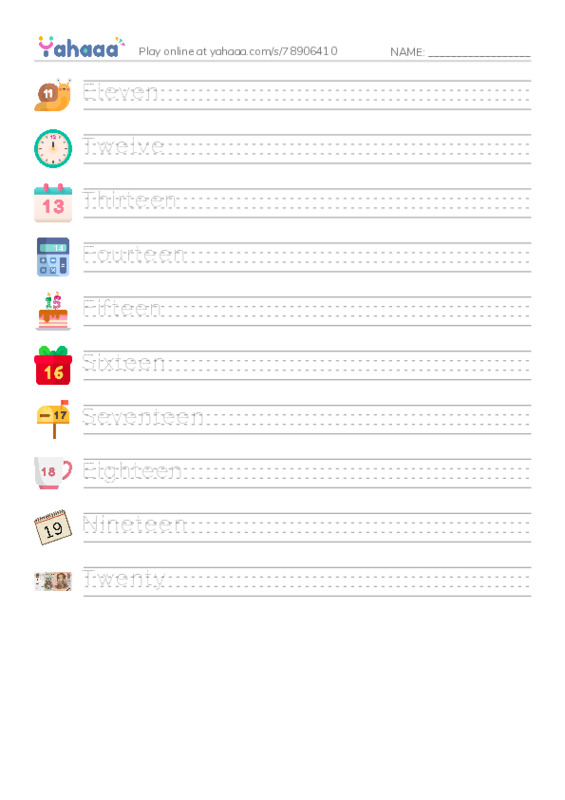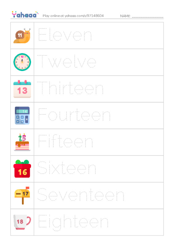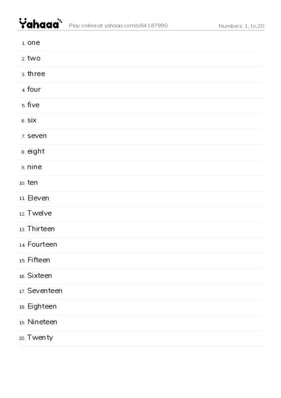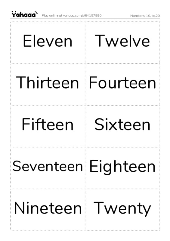 Eleven, Twelve, Thirteen, Fourteen, Fifteen, Sixteen, Seventeen, Eighteen, Nineteen, Twenty