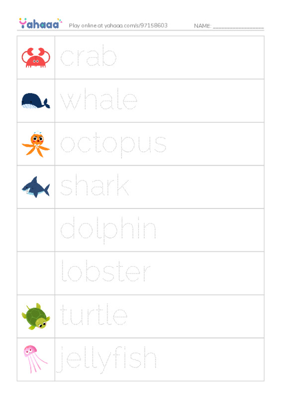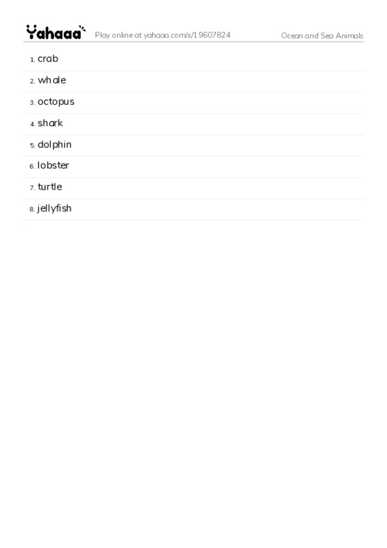 More Worksheets in Ocean and Sea Animals
