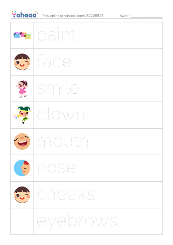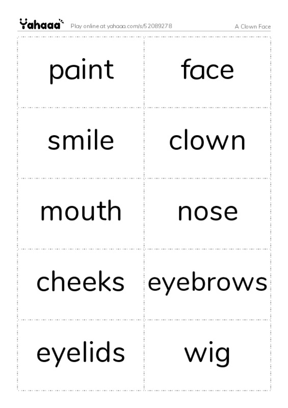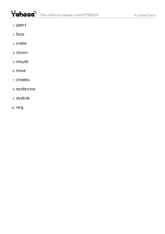 More Worksheets in A Clown Face