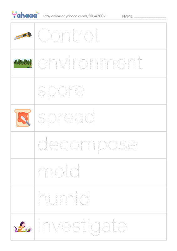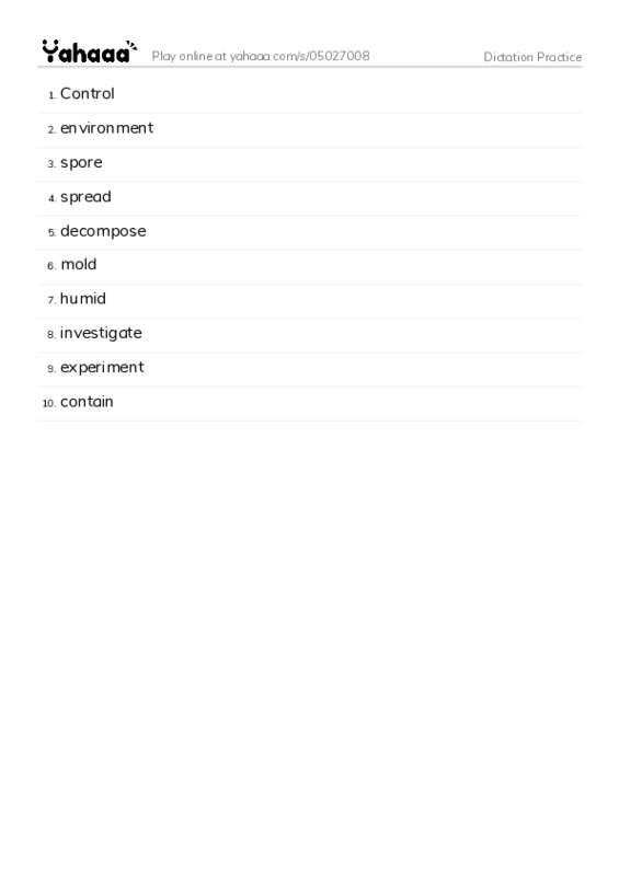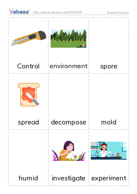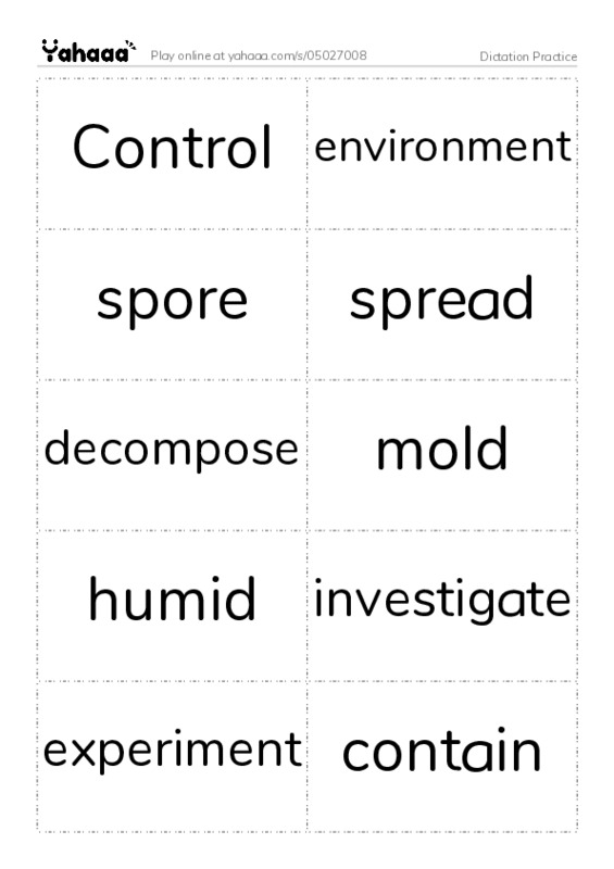 Control, environment, spore, spread, decompose, mold, humid, investigate, experiment, contain