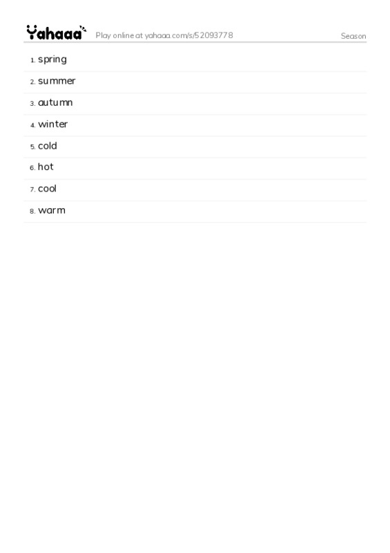 More Worksheets in Season