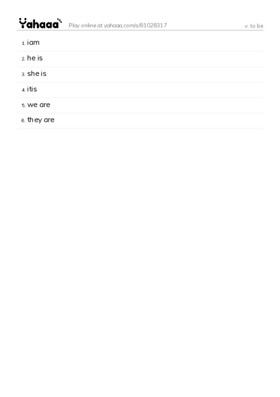 iam, he is, she is, itis, we are, they are