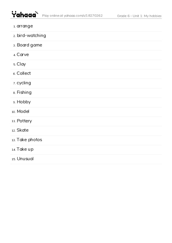 Grade 6 - Unit 1: My hobbies PDF write between the lines worksheet