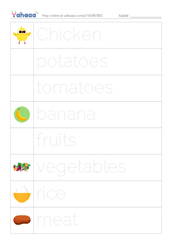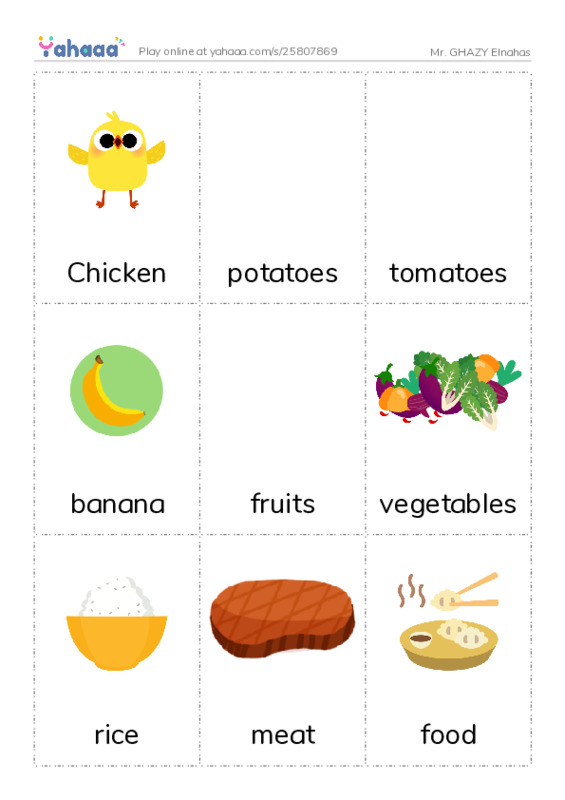 Chicken, potatoes, tomatoes, banana, fruits, vegetables, rice, meat, food, fish, lunch