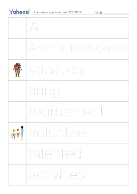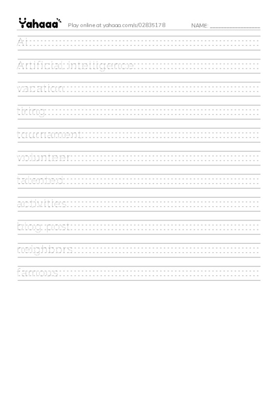 Ai, Artificial intelligence, vacation, tiring, tournament, volunteer, talented, activities, blog post, neighbors, famous