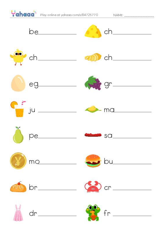 beans, cheese, chicken, chips, egg, grapes, juice, mango, pear, sausage, money, burger, bread, crab, dress, frog, present, tree, crayon, trousers, scarecrow, rice ball, meat ball, dance, drink, eat, hold, listen to music, take photos, balloon, lemonade, festival, bucket, water fight, sing, long, ring, angry, string, think