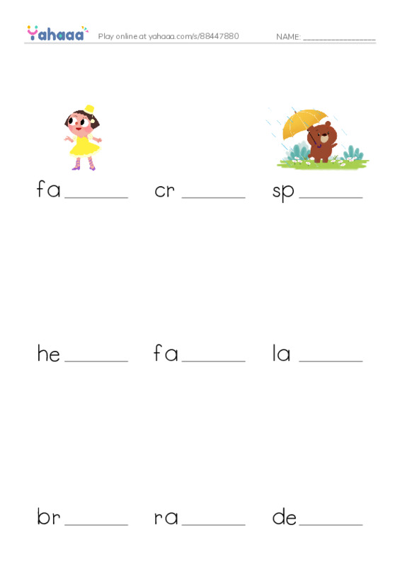 worksheet to fill in words gaps
