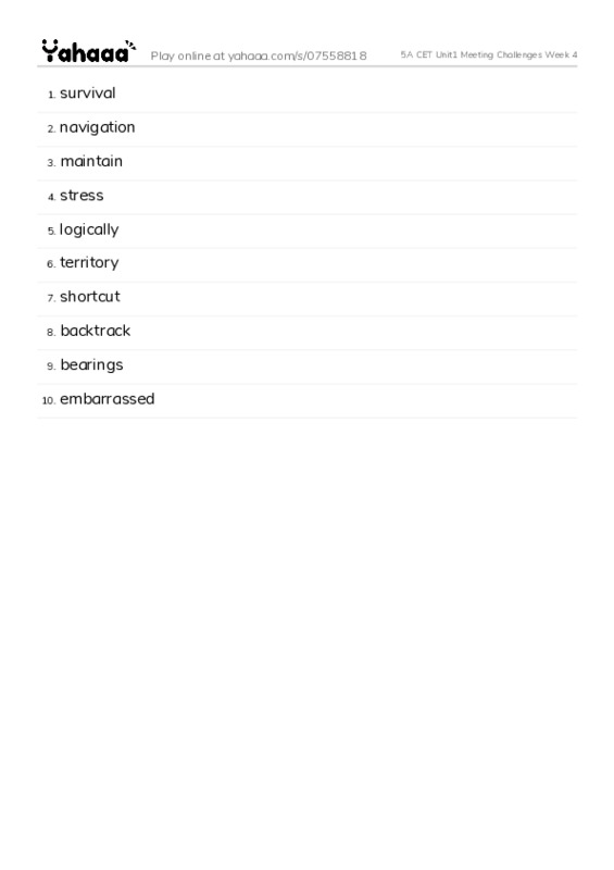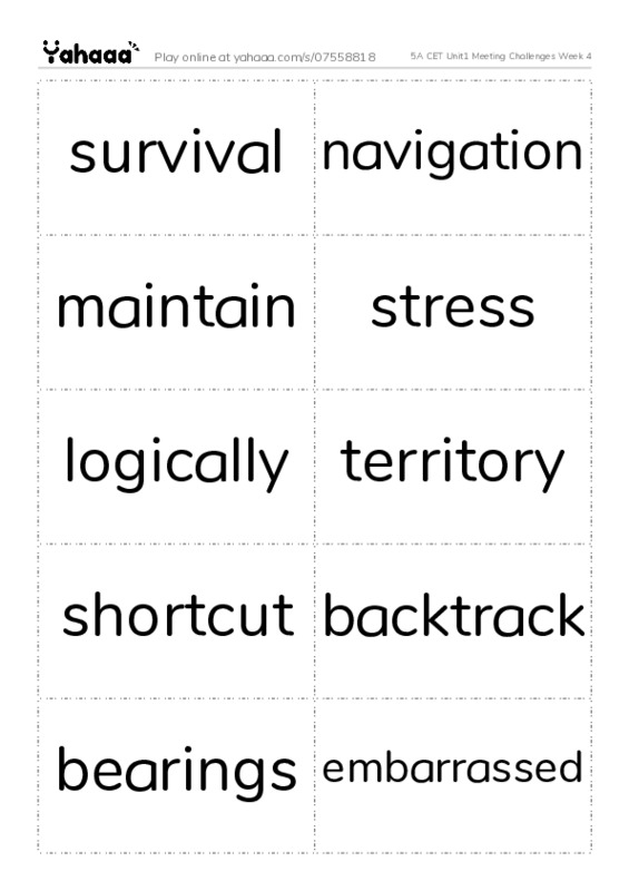 survival, navigation, maintain, stress, logically, territory, shortcut, backtrack, bearings, embarrassed