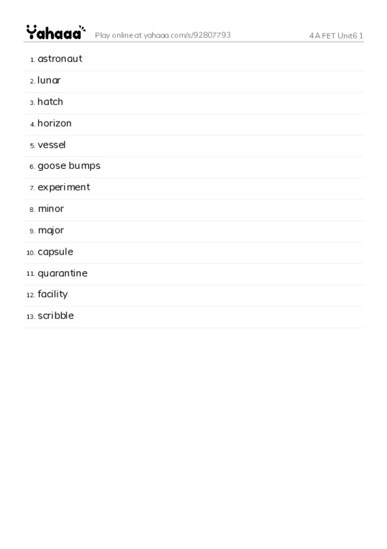astronaut, lunar, hatch, horizon, vessel, goose bumps, experiment, minor, major, capsule, quarantine, facility, scribble